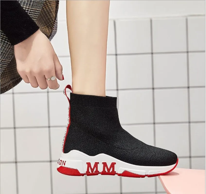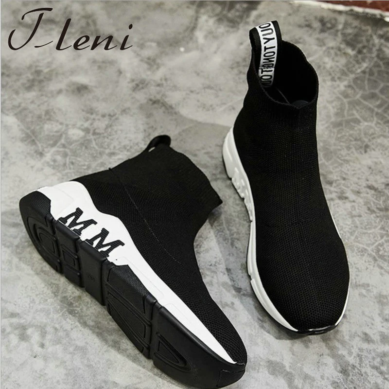 Tleni 2018 Woman Casual Shoes Flat Platform Heels Black white sock shoes High top Gym Shoes Trainers Breathable Sneakers ZX-95